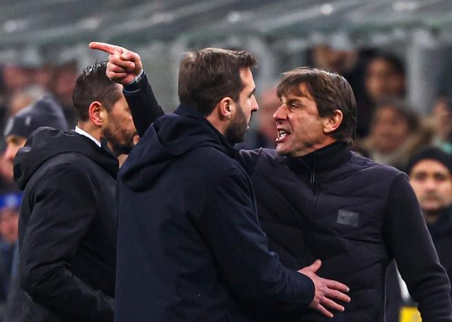 在国际米兰下半场得到点球后,孔蒂向主裁判爆粗口抗议,他被红牌罚下。