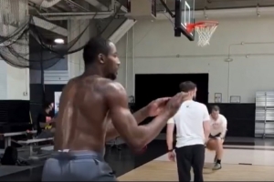 金沙娱乐app下载-增重了?库明加光着膀子进行三分训练 夏日特训秀健硕肌肉